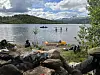 FLOTT UKE. Godt vær skapte en flott ramme rundt årets Villmarkscamp i Beiarn. Her er de ved Lille Ramskjellvatn der det var både bading og padling - og selvsagt bål.