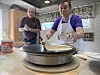 Tilbakevennende kunde. - Thor Hushovd var i Saltdal for andre gang under Arctic Race tidligere i år. Han er tilhenger av delikatessen og benyttet sjansen til å få opplæring i bakekunsten av ekspertene.Sverre Breivik