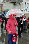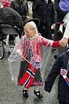 Det gjorde nok at det var litt færre som sto langs ruta og så på, men regnværet la ingen demper på deltakelsen og deltakerne. Et flere hundre meter langt tog med alle barnehager og skoler var fullt av glade og hoiende barn som måtte passere en og annen sølepytt med bunadsskoene.
