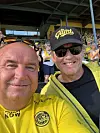 STOR OPPLEVELSE. Bjørn Soleng (t.v.) og Terje Skogvoll sammen på tribunen på Glimt.kamp