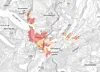 UTBYGGING. Kartutsnitt av området som vil kunne oppleve periodevis redusert kvalitet eller manglende dekning i forbindelse med arbeidet. Oransje felt = kapasiteten kan være redusert Rødt felt = dekningen kan forsvinne helt.