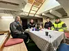 KOS. Her er noen av «Mandagsgjengen» samlet under dekk på MK Saltværingen. Eilif Bentsen og Ove Andreassen sammen med skoleelevene Viggo Olai fra Setså og Henry fra Stamnes.