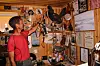 PÅ BESØK. Det er mye å titte på og studere i "villmarkshula" til Cato i Sulitjelma. Her er det Helmut Hintsteiner fra Østerrike som er innom på sin vandring Norge på langs.