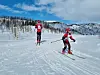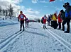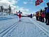 Folkeliv i løypaTidligere verdensmester Anette Bøe får servering av Pål Arve Dupaune.