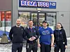 FORNØYDE. Rema 1000 på Krokdalsmyra overtar fra tirsdag 11. mars Post i butikk fra Coop Extra på handelsparken. Fra venstre kjøpmann John Skoglund, postansvarlig John Eirik Erstad, Bohdan Shapovalov og Amalie McLaughlin.