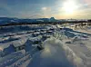 Vi får besøk av en brøytebilsjåfør og nyter en medbrakt lunsj mens sola skinner over Saulo og det store vinterlige landskapet som er Sulisfjellene.