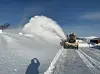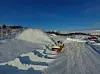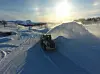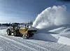 Det ryddes først på skuterparkeringen rett ved Daja-krysset, før han tar fatt på veien videre opp i fjellet. Der det trengs, rydder han noen av utkjørslene langs veien, og ved krysset inn til Skihytta lager Sandbakk og fresen en diger parkeringsplass på noen få minutter.