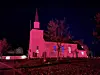 Fauske kirke bader i rosa lys. Men hvorfor gjør den det? Det kan kirkeverge Terje Skogvoll svare på.