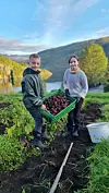 POTETHØSTING. Matti og Mathilde er fornøyd etter årets potetopptaking på Ørnes gård.