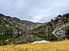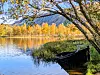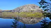 HØST I FJELLET. Annavannet ligger speilblankt en nydelig oktoberdag. Amy har tatt det meste av bladene fra trærne, men bakken har flotte farger.