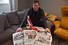 ARTIGE MINNER. Jørgen G. Kristensen har funnet fram avisene fra januar 2002 da faren Sture Gundersen hadde lurt naboen med å kaste en rype over hustaket, som om den var truffet av en nyttårsrakett. Champagneflaska Sture fikk fra Se og Hør er også bevart.