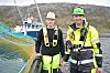STORTRIVES. Driftsteknikerne Eddie Sjønes (t.v.) og Richard Strand arbeider i Mowi sin stamfiskavdeling i Sørfold, og stortrives med å arbeide utendørs. Her er de på lokaliteten i Reinvika i Sagfjorden.