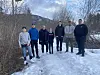KLARE FOR INNSATS. Her er en gjeng medlemmer av Motorsportklubben samlet ved innkjøringa til området Enduro-banen skal bygges. Så snart snøen er borte starter dugnadsarbeidet.