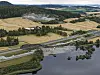 TATT AV RAS. Ras ved Nesvatnet ved Levanger. En personer er ikke gjort rede for etter at et ras gikk over E6 i Levanger. En bil har havnet i vannet, og et hus står i fare.