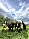 TURFØLGE. Her ser vi besetningen slik den har vært den siste tiden. Fra venstre: Trille, Viljur, Manni, Signe M., Storm, Signe T., Poker og Spiken
