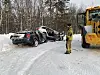 NØDETATER. Thomas Bentsen fra Salten Brann inspiserer den arrangerte bilulykken utenfor Sparebank Arena på Rognan.