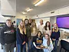 Noen av de 32 elevene i 8. trinn ved Rognan Ungdomsskole som var tilbake etter endte oppdrag. Agnes, Anna-Linnea, Sofia, Emma, Vilje, Sofie, Karlotte, Trygve og Henriette, som var klare til å få seg litt mat. I bakgrunnen kontaktlærer Lisa Mari Jensen