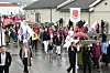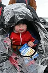 Mens barnetoget tidligere på dagen gikk uten regn, måtte folk fram med paraplyene i borgertoget på ettermiddagen.