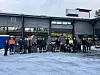 STO PÅ. Her er de fleste elevene ved VG2 Industriteknologi ved Saltdal Videregående skole samlet rundt prosjektet de har gjort ferdig for Saltdal Handelsstand.
