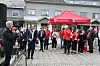 PÅ TORGET. Statsminister Jonas Gahr Støre foran mange frammøtte på torget i Fauske sentrum fredag.