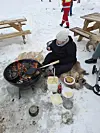 FORNØYD. - Vi er godt fornøyd med oppmøtet på aktivitetsdagen på Røkland, forteller arrangørene. Monica Evensen Seløy bidro med vaffeksteking på bålet.