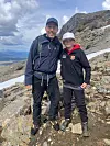 Svenske Peter Eklund og sønnen Oscar Eklund Kjæll på vei ned etter å besteget Solvågtind (1560 moh). Kliss våte på beina etter mye snø, men svært godt fornøyde med turen.