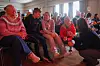 Pia Hasund Vareberg og Mikkel Munthe møter fysioterapeut Kjersti Owren Linnes igjen for første gang i Folkets hus i Sulitjelma. Flankert av mammaen til Pia, Line Hasund Vareberg og mammaen til Mikkel, Marthe Munthe.