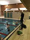 Vinterleir i svømmingFSK-trener Kim Torry Simmenes ledet treningsøktene i bassenget. Flere klubber hadde gått sammen om leiren.