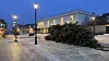 Den kraftige vinden skaper farlige situasjoner, og juletreet på torget har gått over ende.