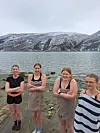 TØFFINGER. Ungdommen hadde selv et ønske om at isbading skulle gjennomføres i løpet av helgen. Tøffe jenter som startet badesesongen litt tidligere enn de fleste. Fra venstre: Amalie Vasset Solbakken, Vårin Høyås, Else-Linea Ånlæger og Agnes Kristensen.