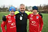 FORNØYD. Johannes Jensen (t.v.) og Fredrik Karlsen fra Valnesfjord gutter 16 er glad for at Johnny reiser rundt og dømmer kamper.